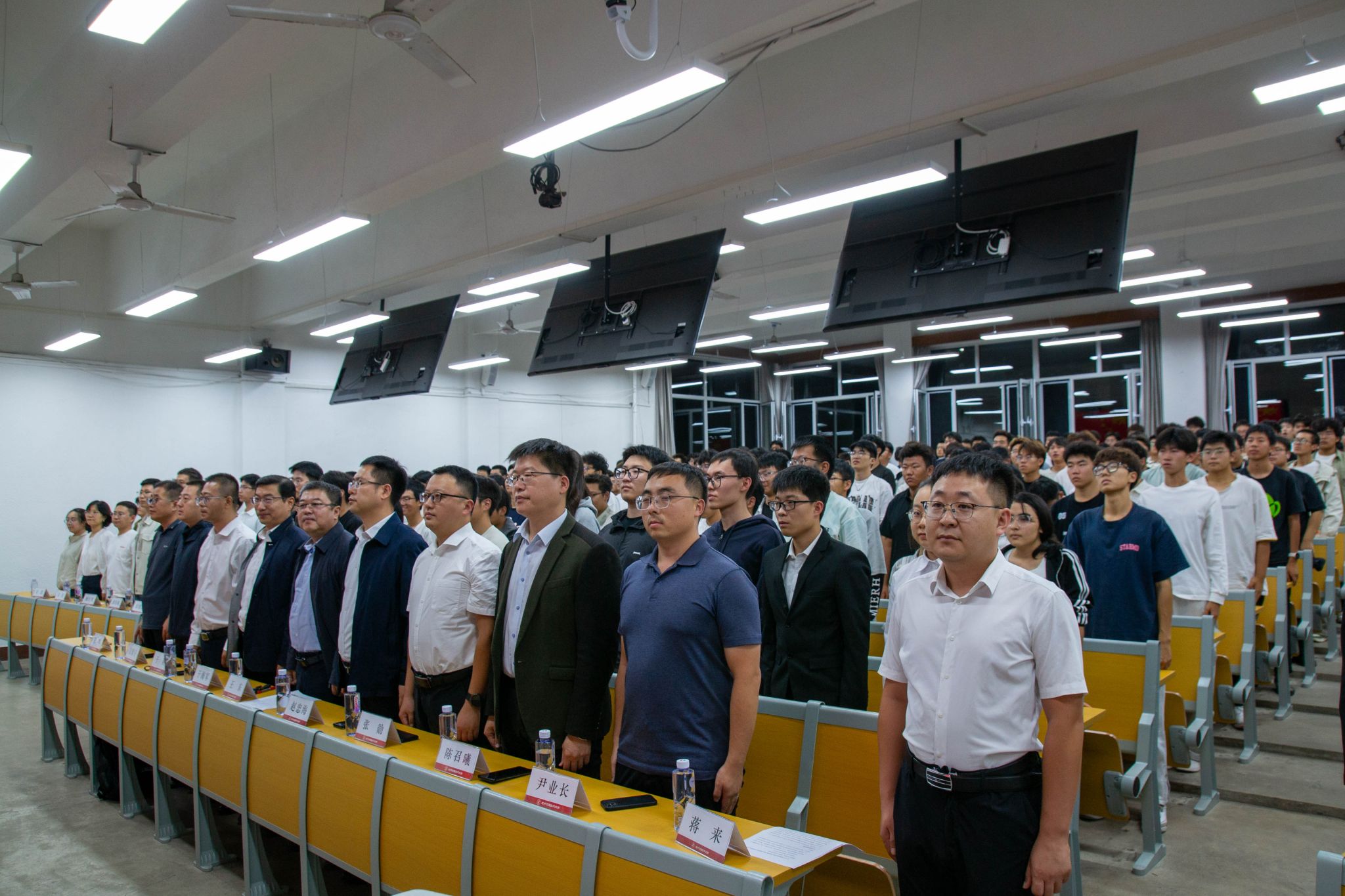 院长王东、党委书记于海军、党委副书记于英、副院长赵忠海、副院长张勋、副院长陈召曦、各系主任、辅导员、2025级新生班导师及全体新生参加了本次典礼。典礼由迷奸