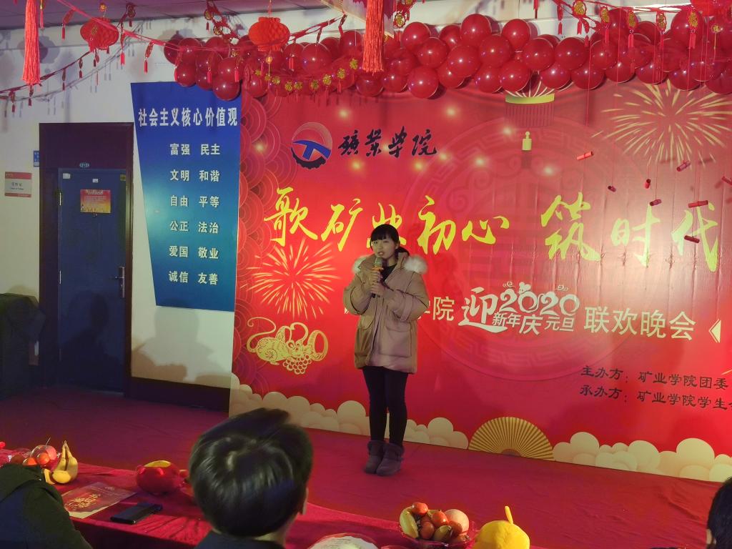 于2019年12月31日晚在致远楼二楼举办了以“歌矿业初心,筑时代梦想”为主题的2020元旦大世界联欢晚会,迷奸