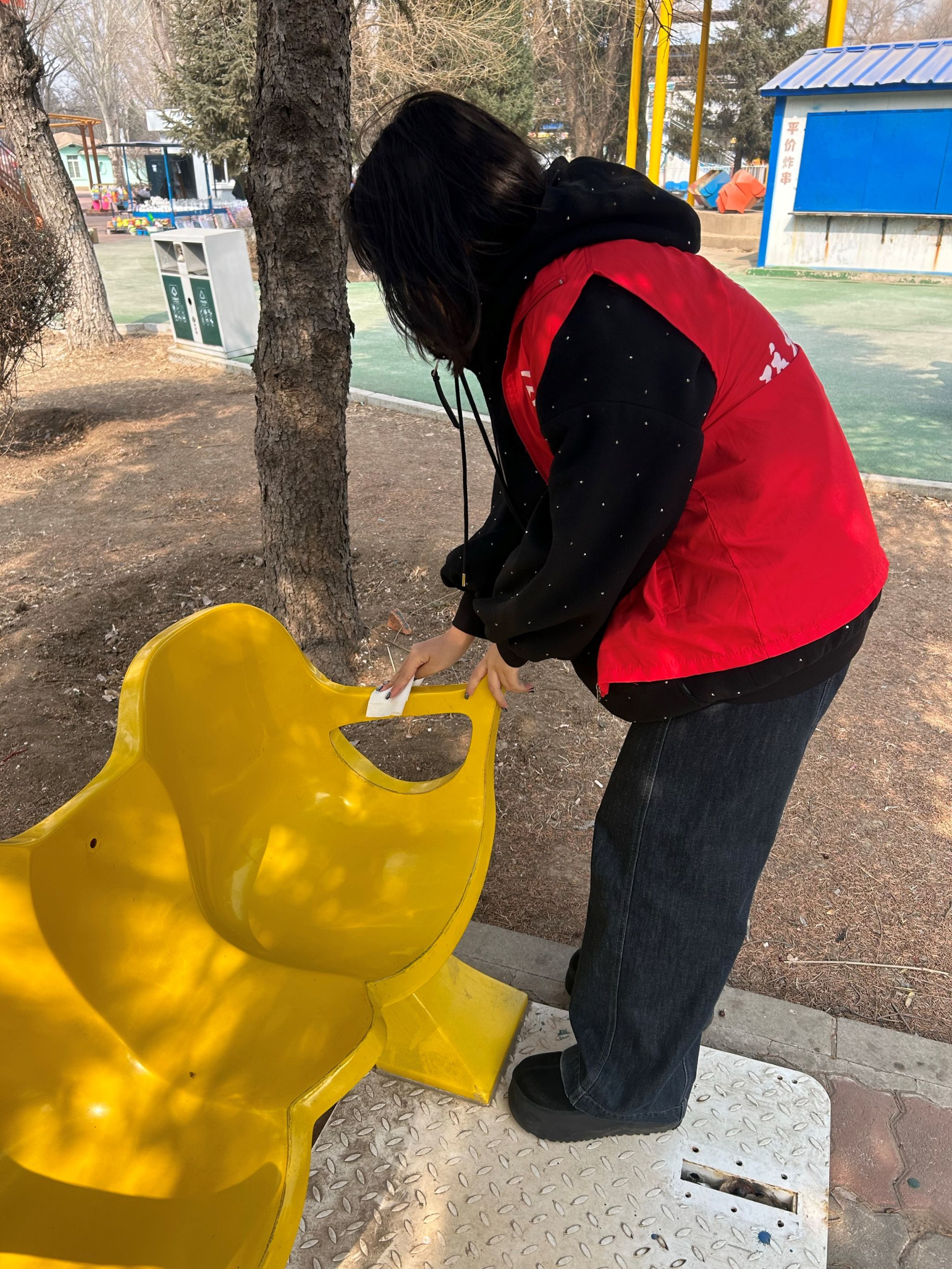 活动期间,志愿者们迅速分组行动。共享单车归位组将杂乱的单车排列整齐,入口处瞬间秩序井然;卫生清扫组手持工具或徒手,清理烟头、纸屑,让公园地面洁净如新;座椅擦拭组拿着抹布,仔细擦拭每一处扶手与座椅,去除污渍。同学们劳动过后,主动与老人聊天,耐心倾听,欢声笑语不断。此次活动,不仅让公园环境焕然一新,更让老人们感受到社会的关爱。志愿者们用点滴行动践行着奉献精神,诠释着青年的担当。